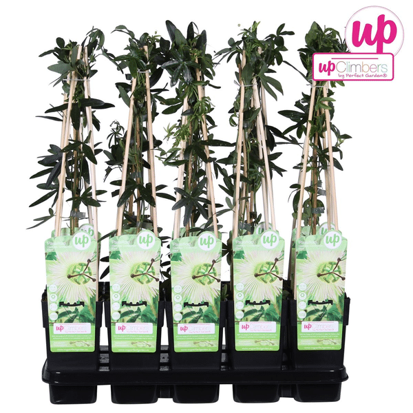 Ben je op zoek naar een plant die zowel elegantie als exotische flair toevoegt aan jouw tuin of balkon? Dan is de Passiflora caerulea ‘Constance Elliot’ – Passiebloem Wit de perfecte keuze voor jou! Deze prachtige klimplant trekt direct de aandacht met zijn opvallende witte bloemen en weelderige groene bladeren.