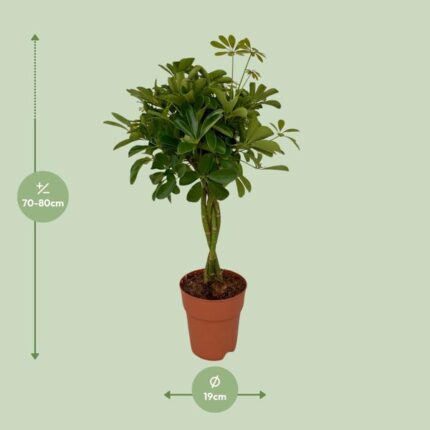 De Schefflera staat bekend om zijn opvallende geveerde bladeren die een prachtig tropisch accent toevoegen aan elke omgeving. Met zijn dichte bladerdek biedt deze plant niet alleen een esthetische waarde, maar kan ook dienen als een uitstekende sfeermaker en ruimteverdeler in huis of op kantoor. Bovendien gedijt de Schefflera goed in verschillende lichtomstandigheden, waardoor het een ideale keuze is voor zowel goed verlichte ruimtes als kamers met minder natuurlijk licht.