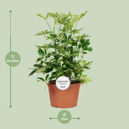 De Schefflera staat bekend om zijn opvallende geveerde bladeren die een prachtig tropisch accent toevoegen aan elke omgeving. Met zijn dichte bladerdek biedt deze plant niet alleen een esthetische waarde, maar kan ook dienen als een uitstekende sfeermaker en ruimteverdeler in huis of op kantoor. Bovendien gedijt de Schefflera goed in verschillende lichtomstandigheden, waardoor het een ideale keuze is voor zowel goed verlichte ruimtes als kamers met minder natuurlijk licht.